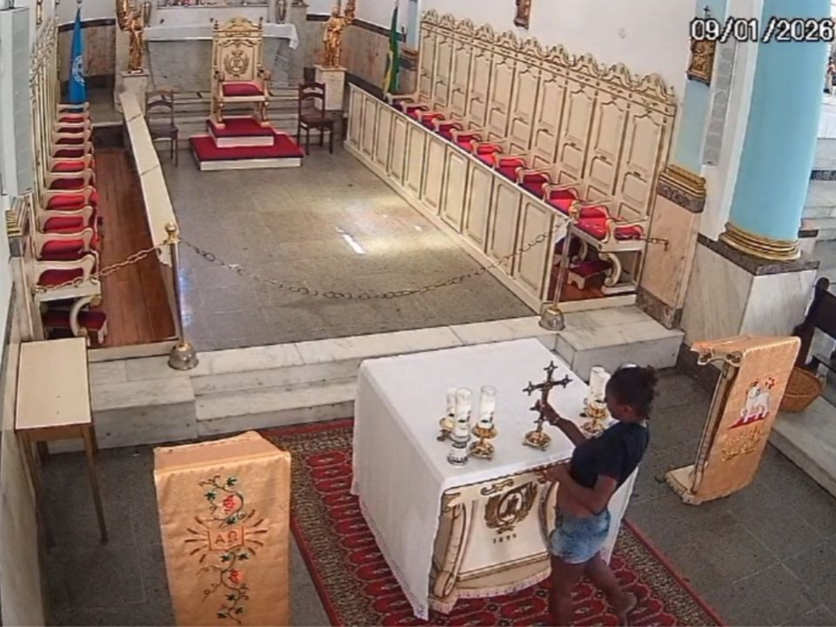 É de revoltar até o mais calmo. Uma mulher foi flagrada por câmera de segurança furtando um crucifixo de bronze direto do altar de uma igreja, no Centro de Niterói, na Região Metropolitana do Rio. O c...