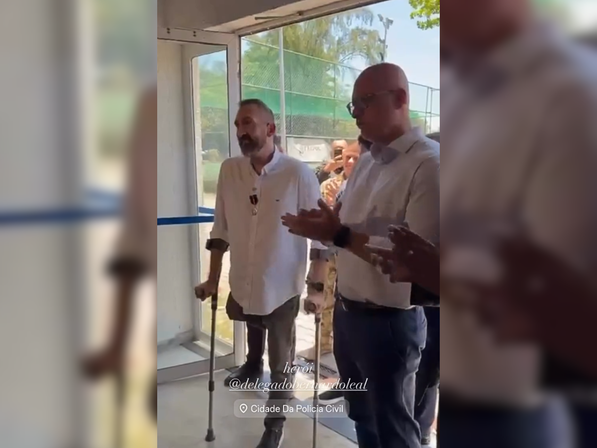 Olha essa cena forte e cheia de emoção. O delegado Bernardo Leal, um dos agentes baleados por traficantes durante a Megaoperação Contenção, em outubro do ano passado, voltou ao trabalho nesta quarta-f...