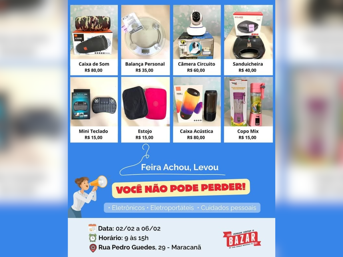 Olha só que coisa bacana, meu povo! A partir da próxima segunda-feira, dia 2 de fevereiro, começa a feira que todo mundo estava esperando. A Casa Ronald McDonald RJ vai abrir os portões da Rua Pedro Guedes para a feira “Achou, Levou”, com itens que são verdadeiros achados!